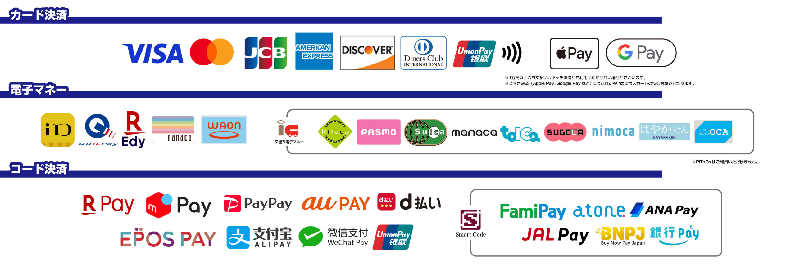 ご利用いただける現金以外のお支払方法は下記の通りです。