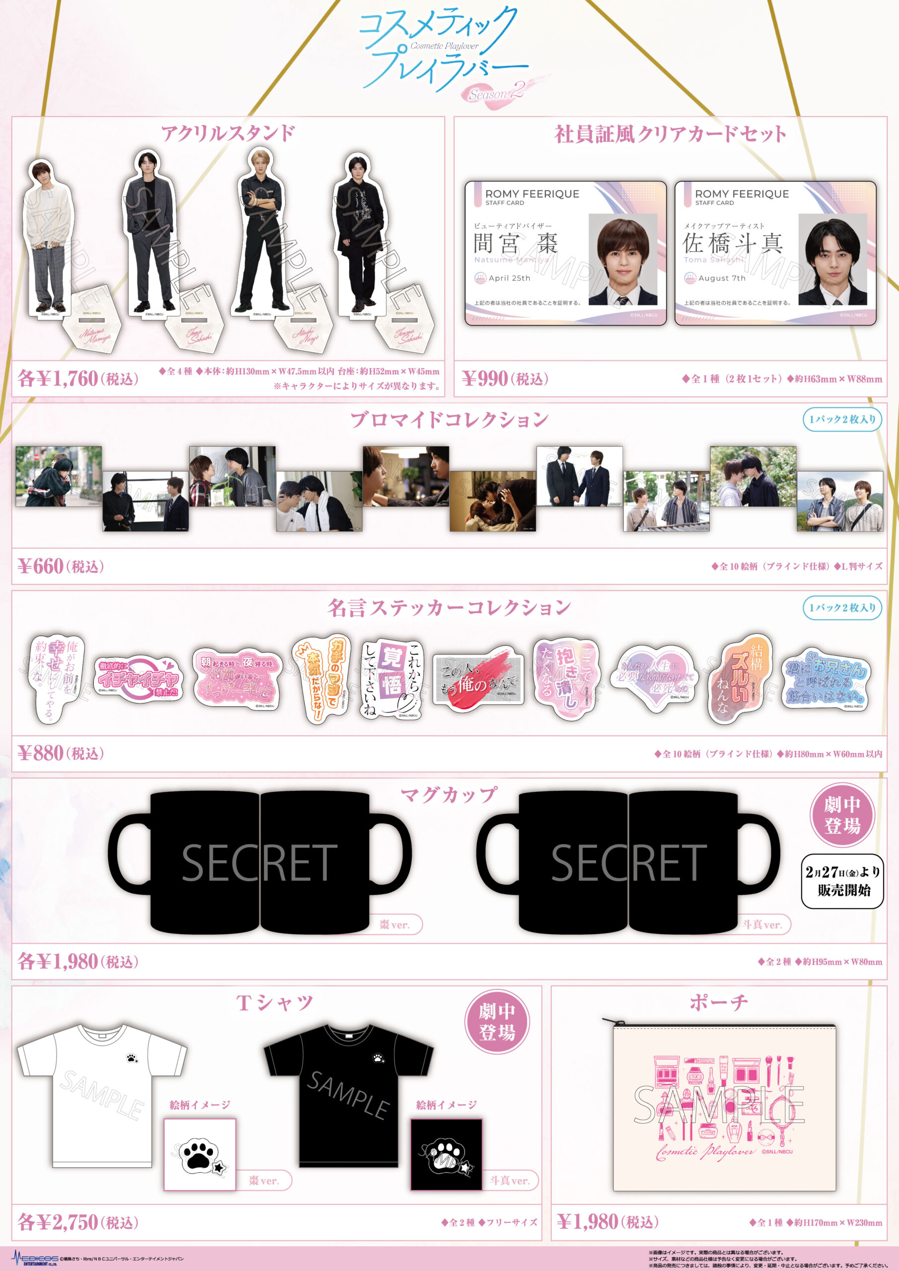 会場では、「コスメティック・プレイラバー Season2」POP UP SHOP オリジナルグッズの販売に加え、等身大パネルの展示などを行います。ぜひこの機会をお見逃しなく!!