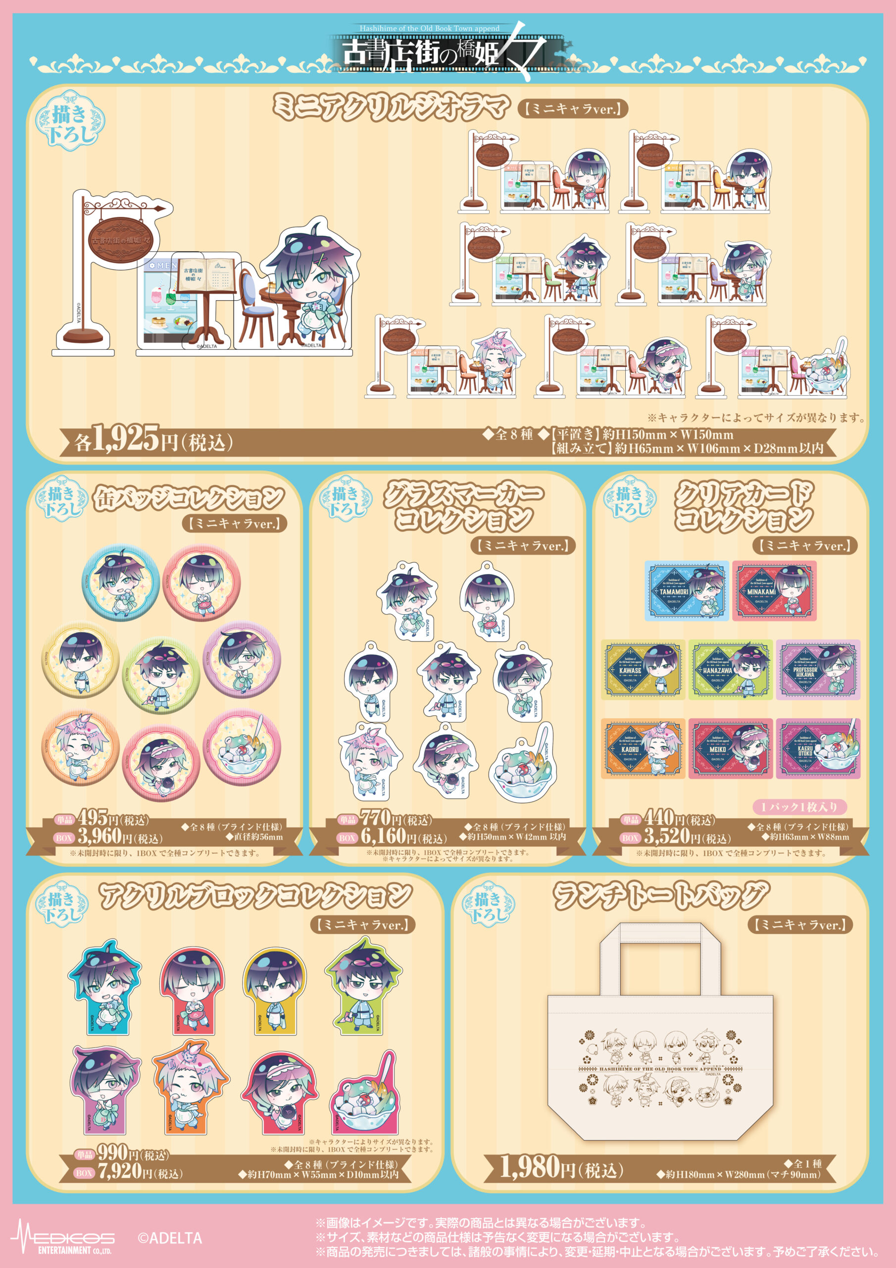 「古書店街の橋姫 々」純喫茶で販売された商品は、MEDICOS ONLINE SHOPにて