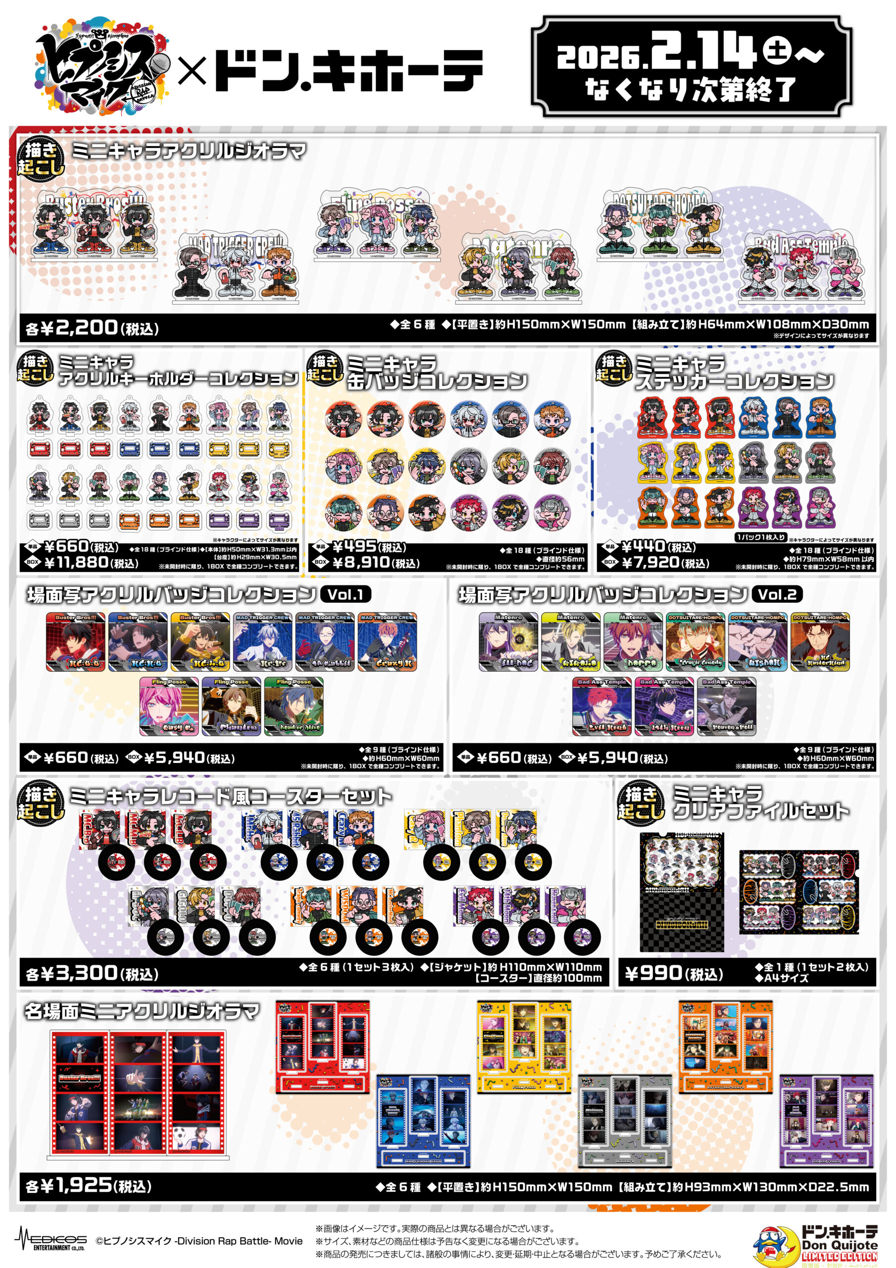 2026年214日(土)より、ドン・キホーテ対象店舗にて、映画『ヒプノシスマイク -Division Rap Battle-』の新商品を発売!
