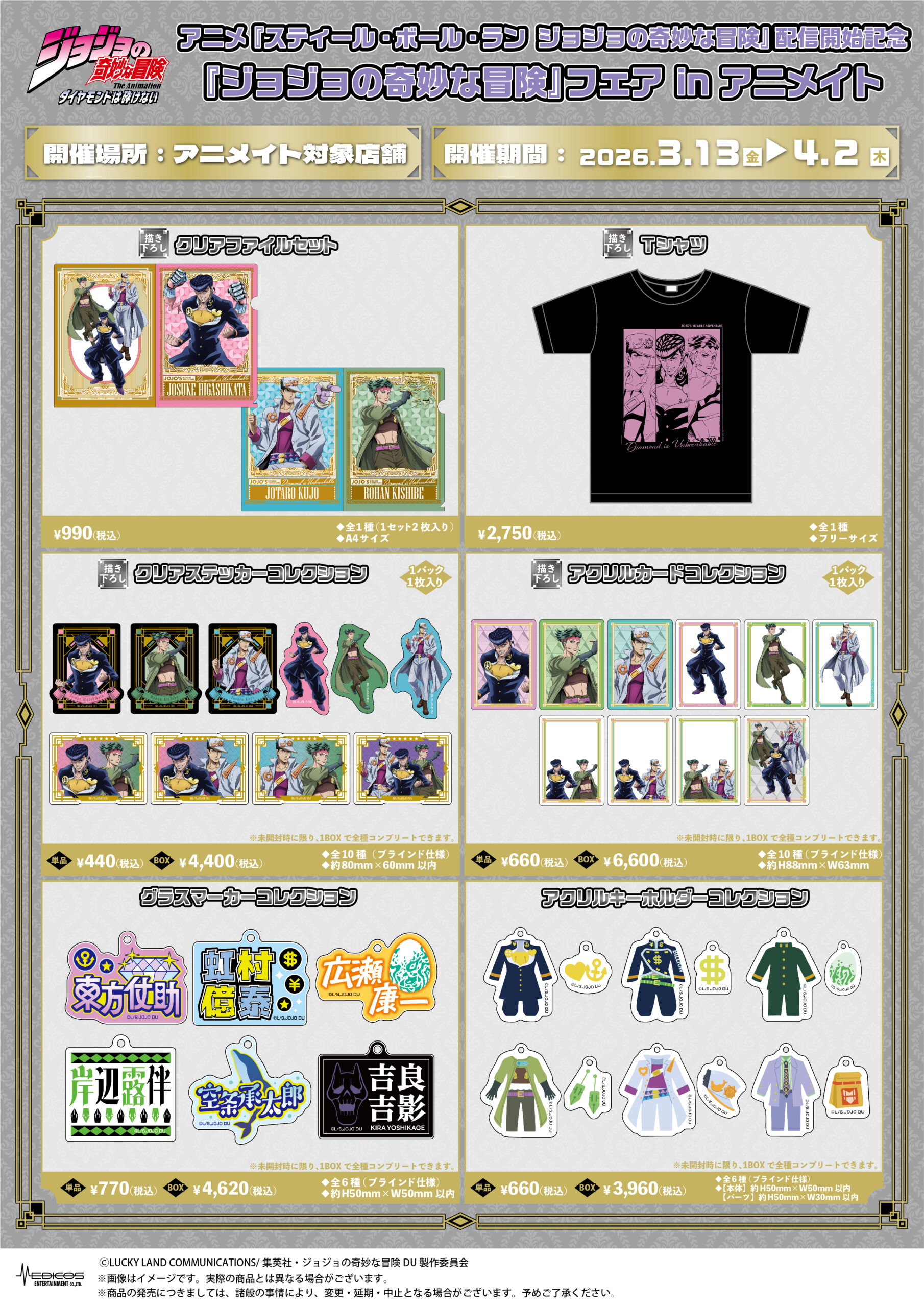 アニメ『ジョジョの奇妙な冒険 ダイヤモンドは砕けない』商品 ※3/13~販売