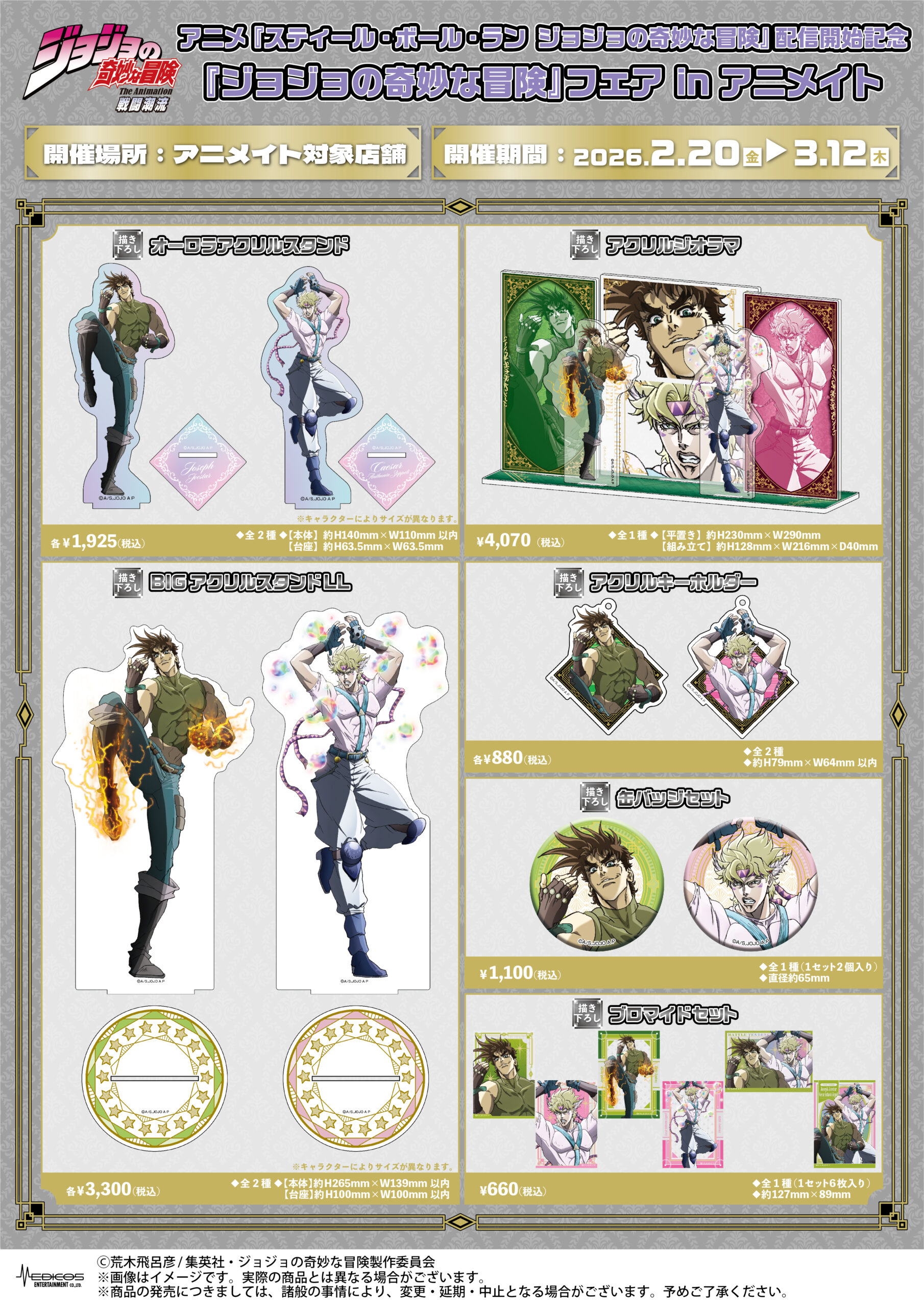 アニメ『スティール・ボール・ラン ジョジョの奇妙な冒険』配信開始記念としてアニメイトフェアを開催!