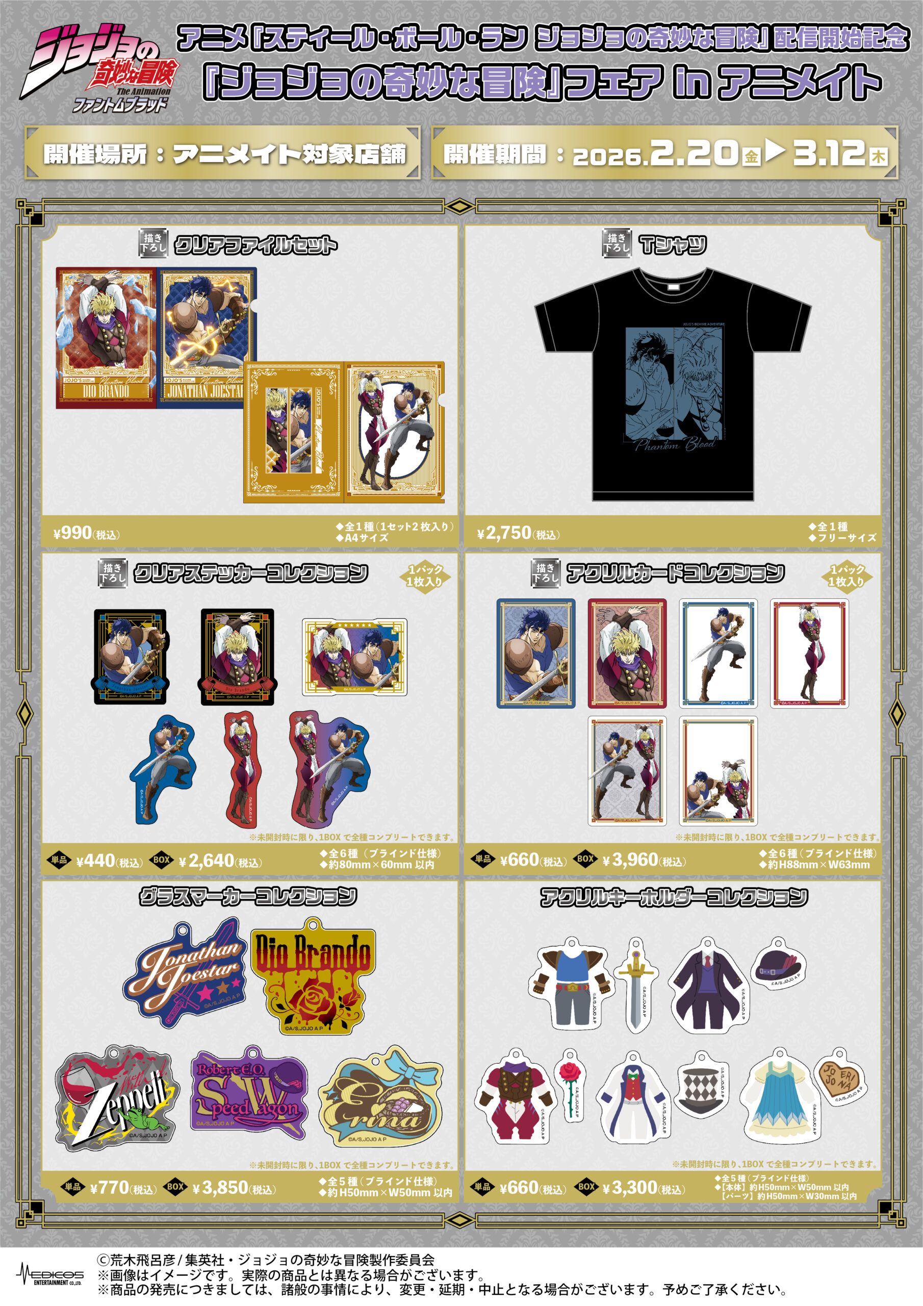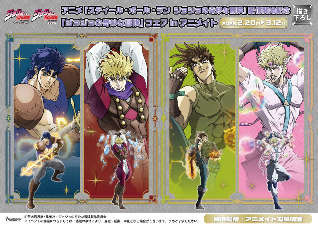 アニメ『スティール・ボール・ラン ジョジョの奇妙な冒険』配信開始記念 『ジョジョの奇妙な冒険』フェア in アニメイト開催決定!