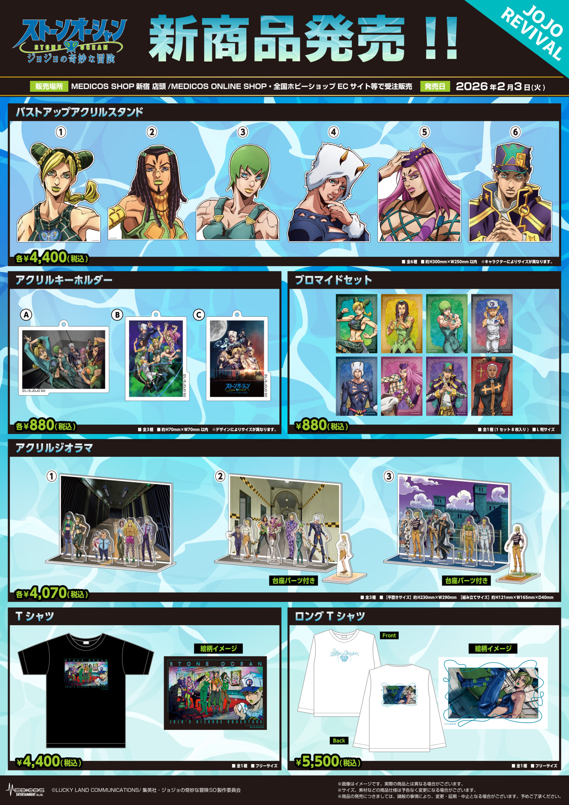 • 2026年2月3日(火)よりMEDICOS SHOP新宿店頭・ MEDICOS ONLINE SHOP・全国ホビーショップECサイトにてアニメ『ジョジョの奇妙な冒険 ストーンオーシャン』 【JOJO REVIVAL】シリーズ新商品販売決定!