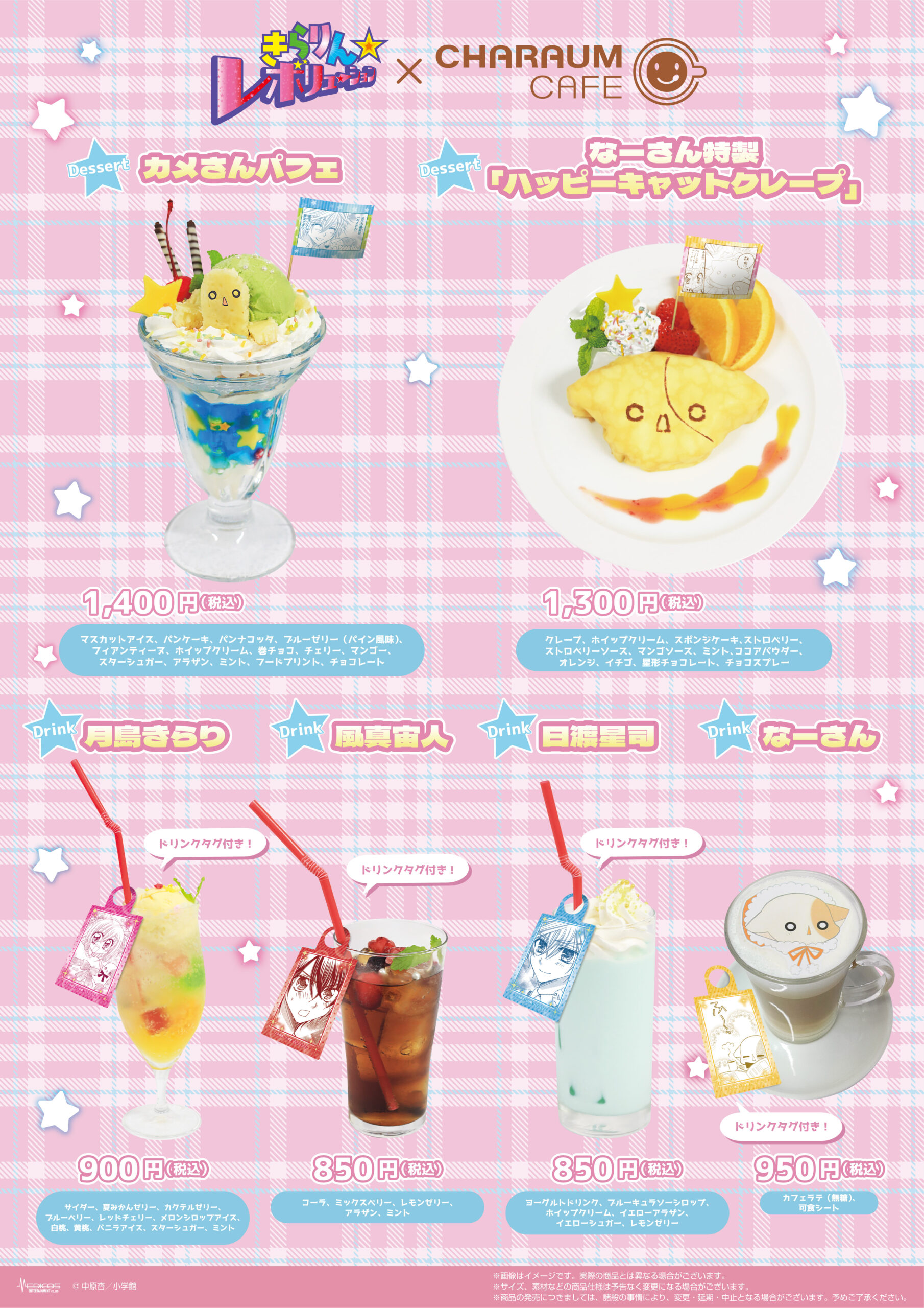 期間中、『きらりん☆レボリューション』コラボメニューを1品ご注文ごとに特典コースター(全8種)をランダムで1枚プレゼント!