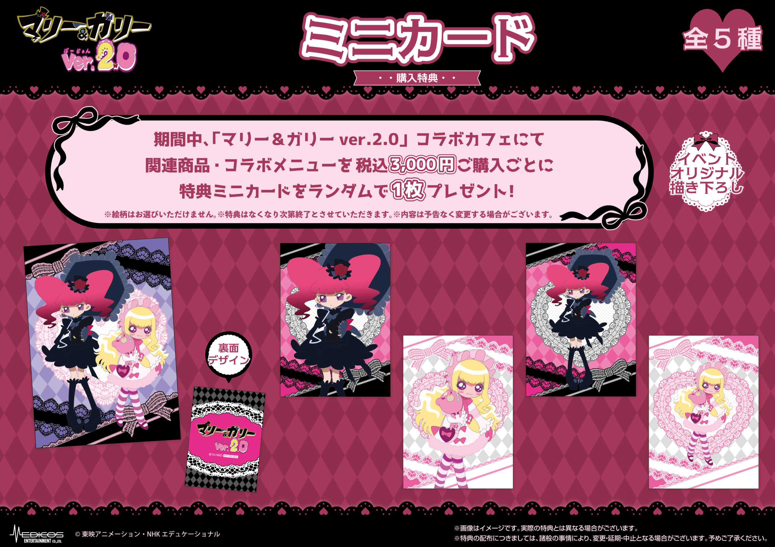 期間中、「マリー&ガリーver.2.0」関連商品(コラボメニューを含む)を税込3,000円お買い上げごとに特典ミニカード(全5種)をランダムで1枚プレゼント!