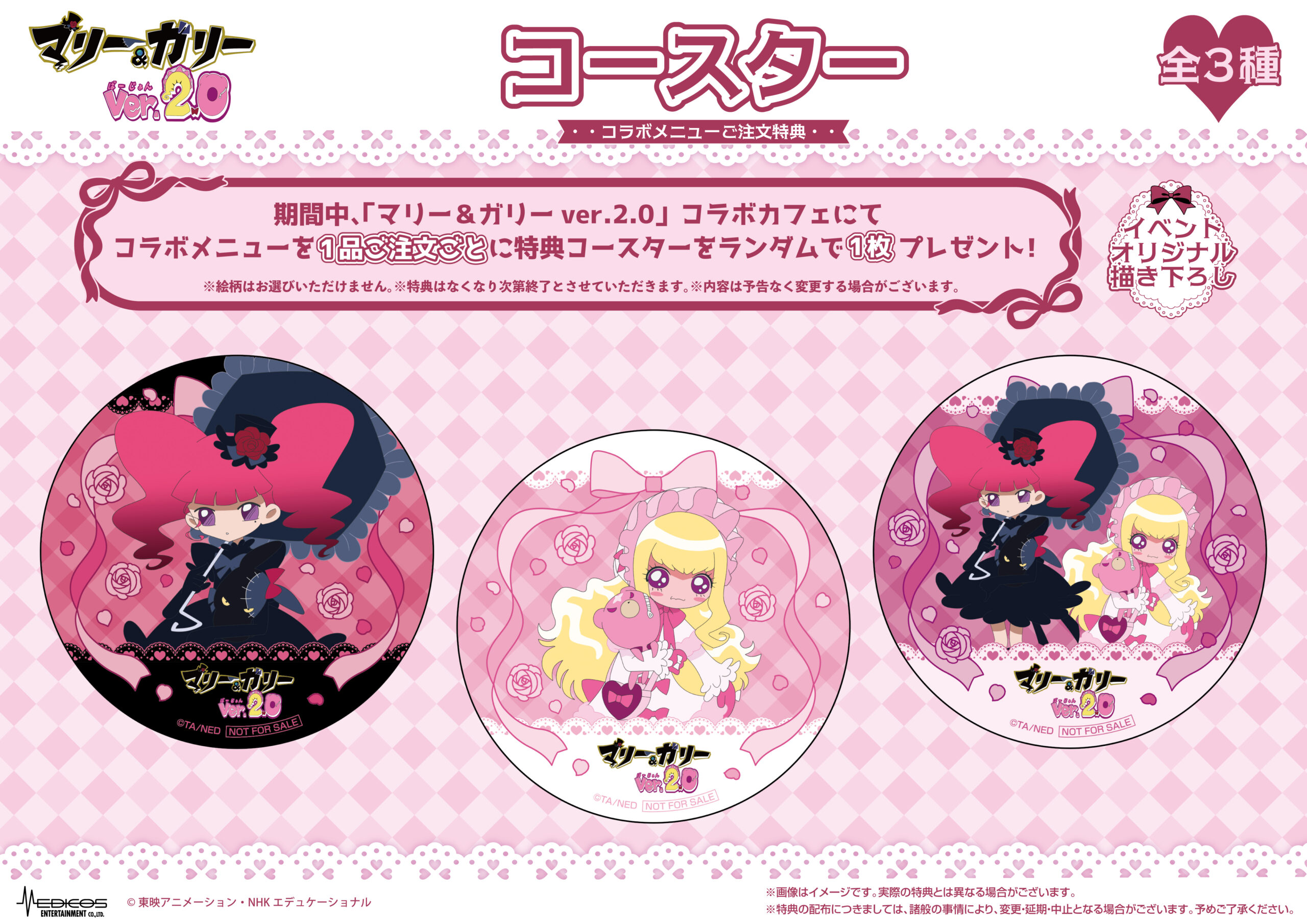 期間中、「マリー&ガリーver.2.0」コラボメニューを1品ご注文ごとに特典コースター(全3種)をランダムで1枚プレゼント!