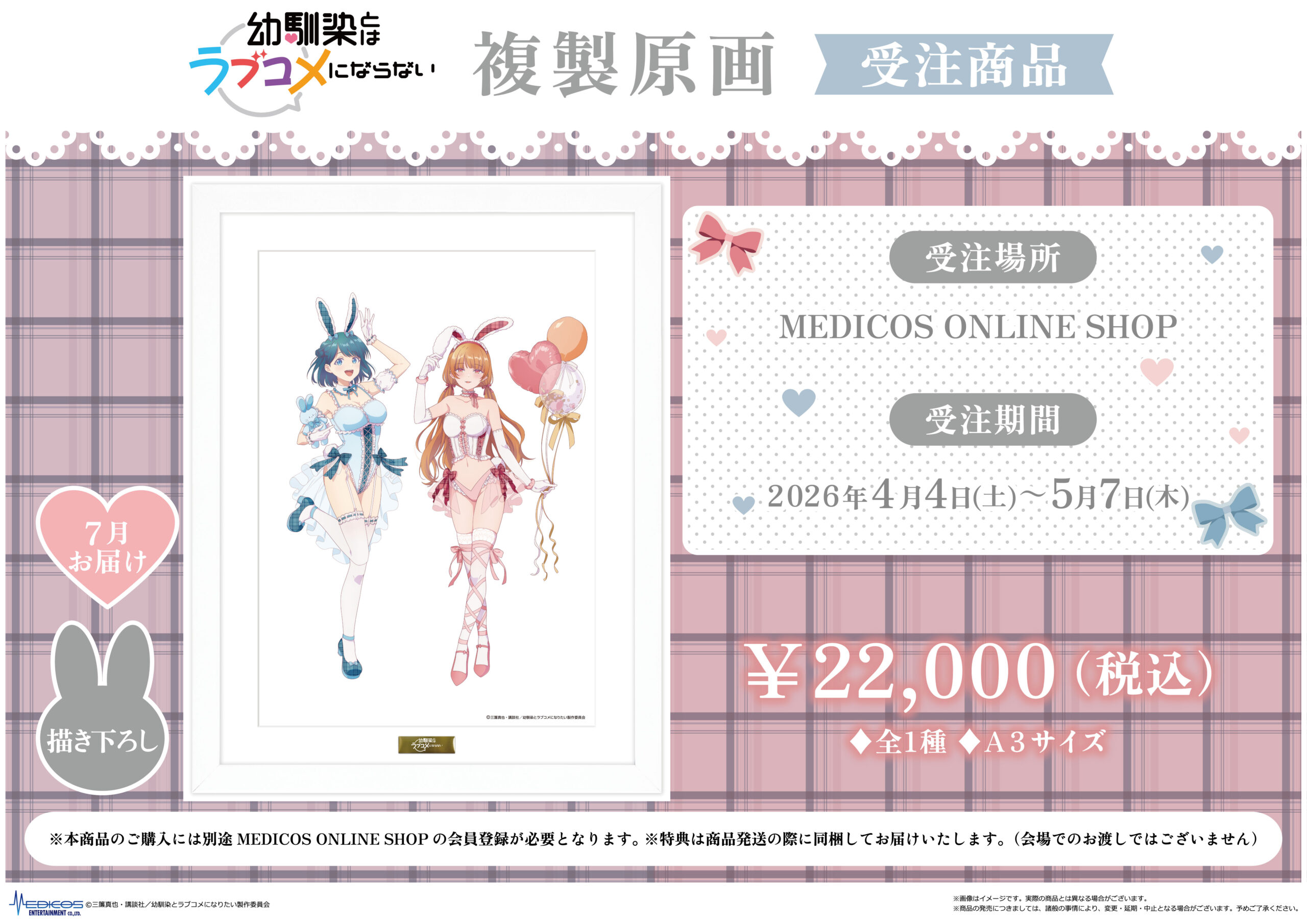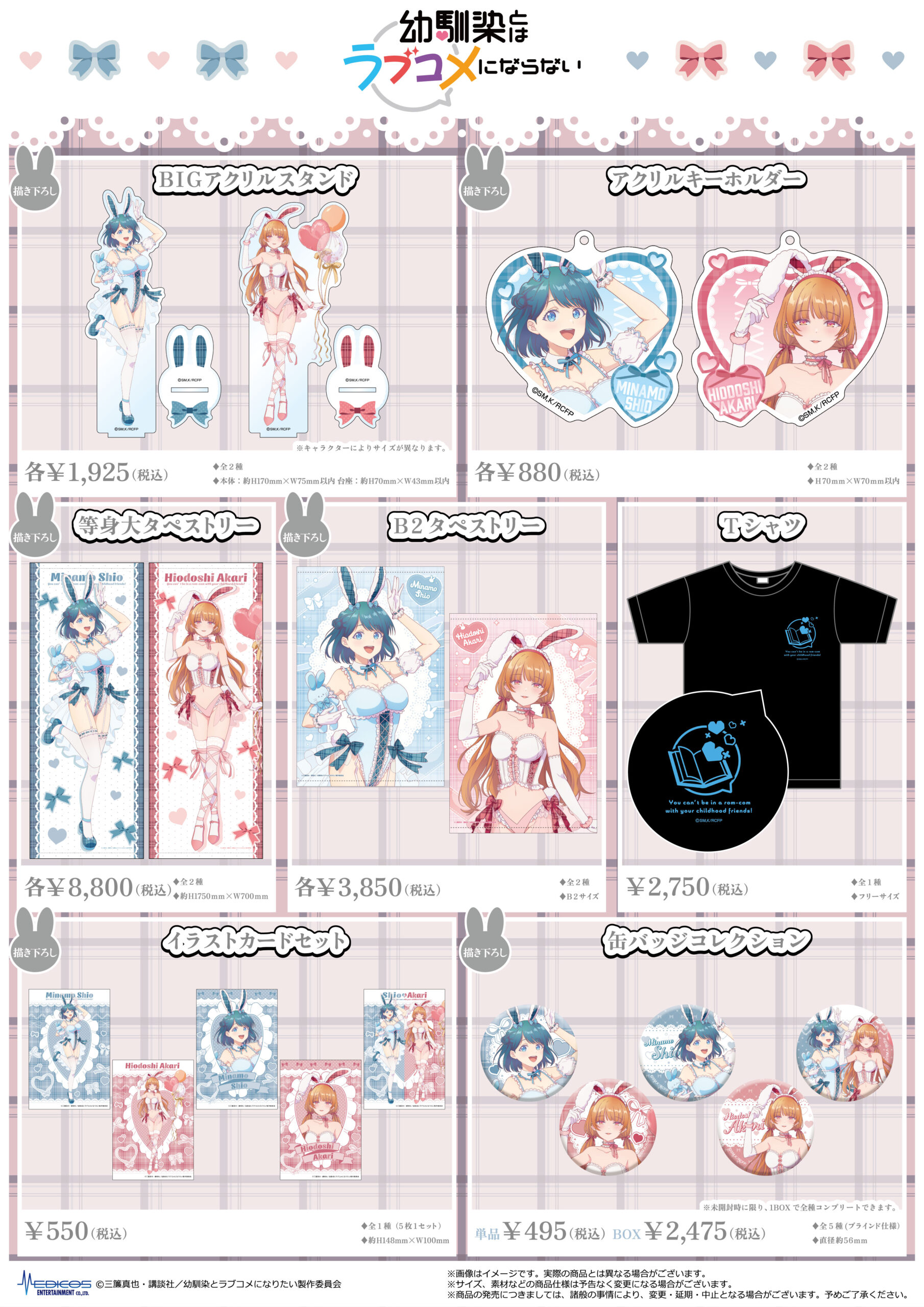 TVアニメ『幼馴染とはラブコメにならない』POP UP SHOPで販売した商品は、2026417()正午よりMEDICOS ONLINE SHOPにて事後通販を開始いたします。
