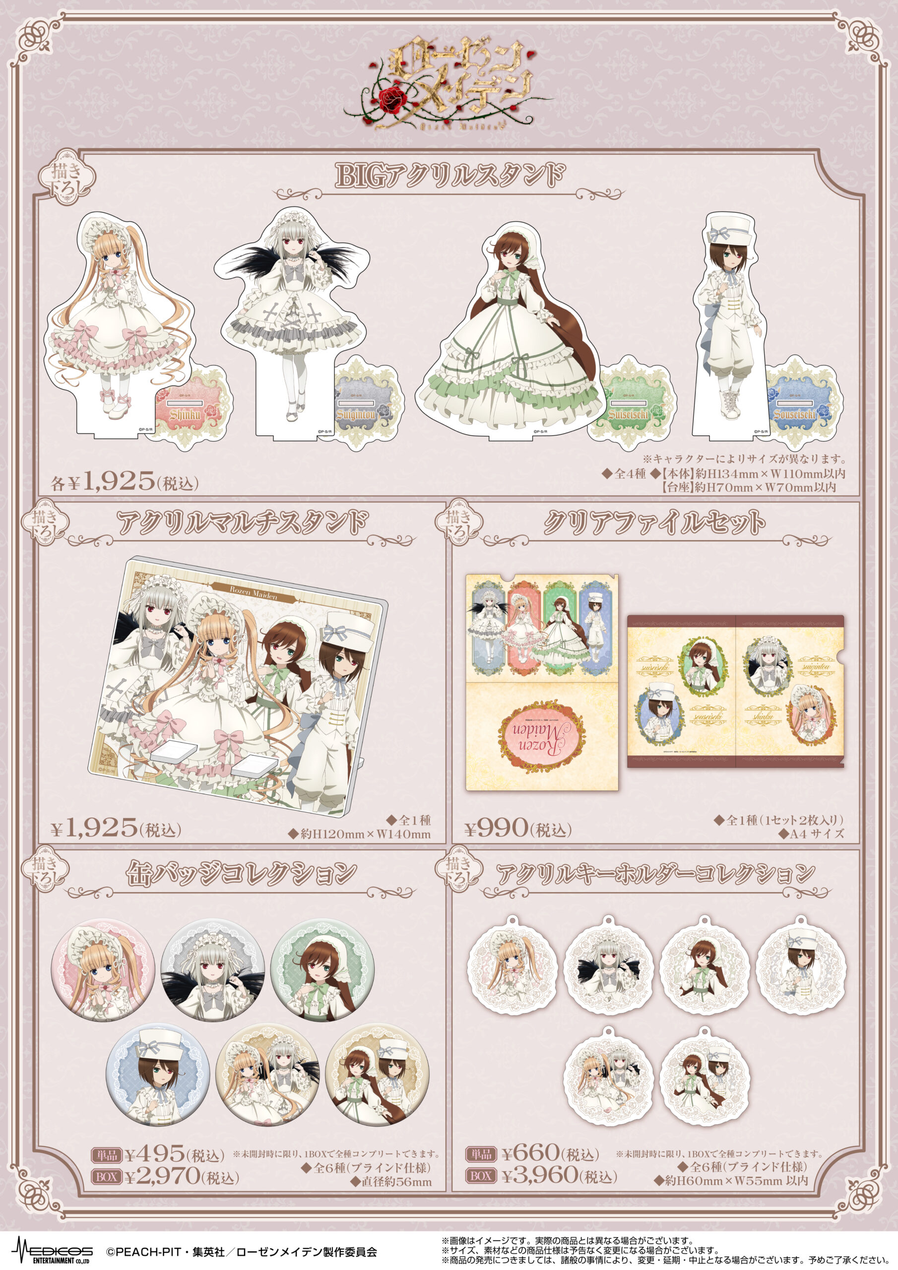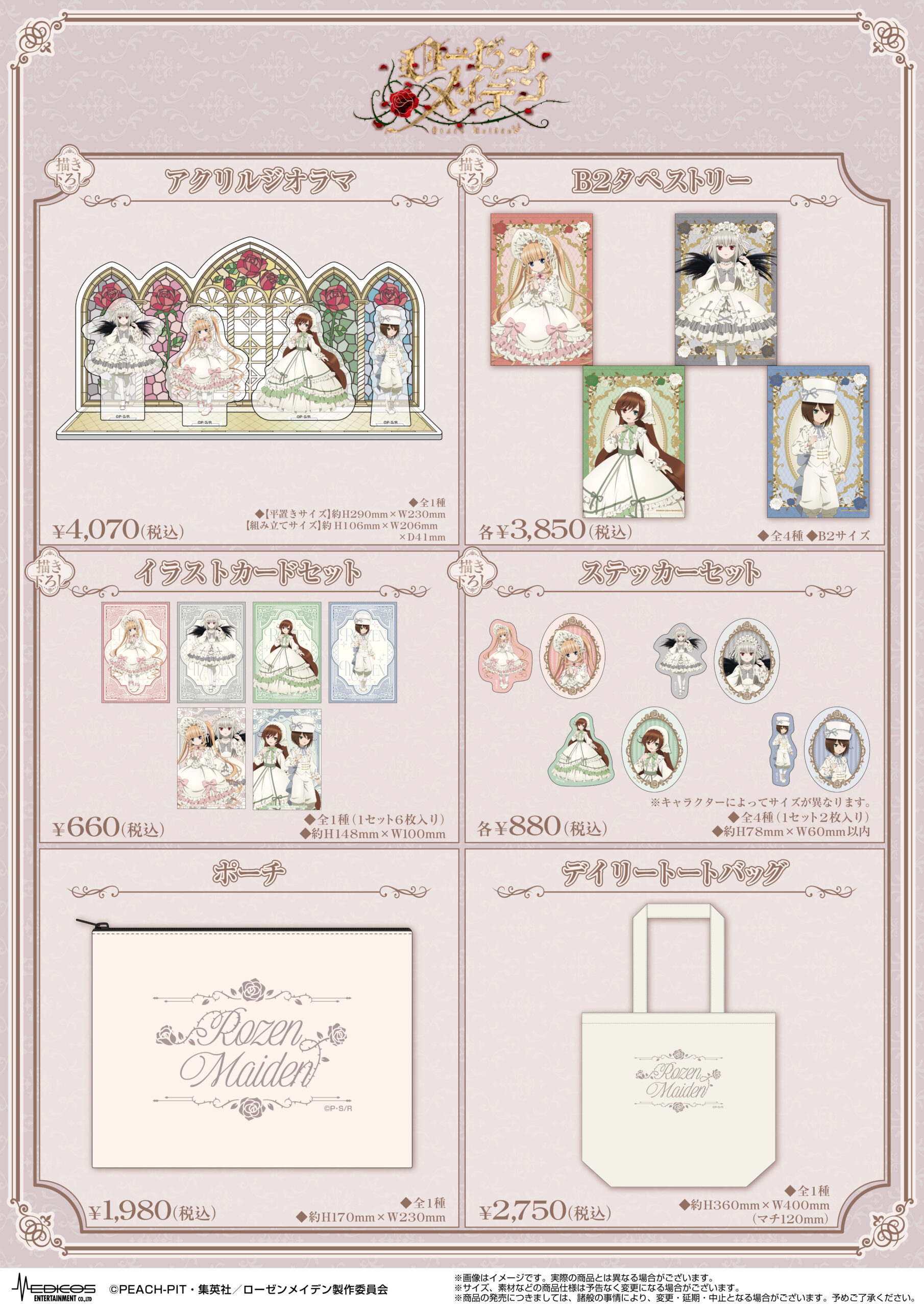 TVアニメ「ローゼンメイデン」で販売した商品はMEDICOS ONLINE SHOPにて事後通販を予定しております。