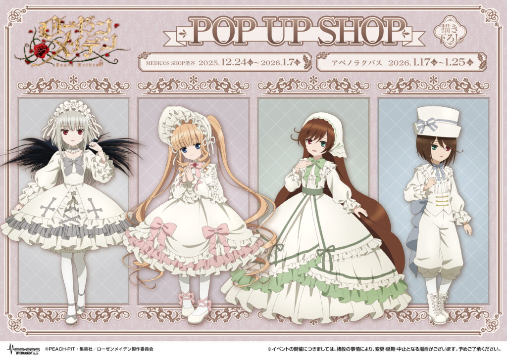 2025年12月24日(水)よりMEDICOS SHOP渋谷・アベノラクバスにてTVアニメ「ローゼンメイデン」POP UP SHOP開催決定!