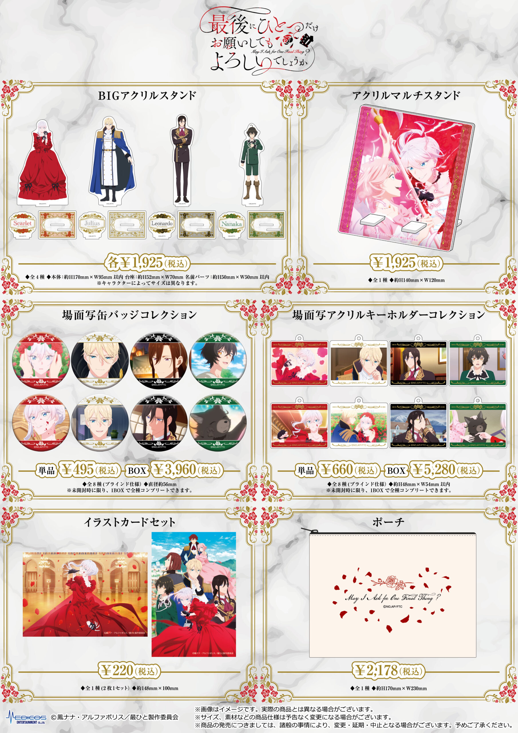 TVアニメ「最後にひとつだけお願いしてもよろしいでしょうか」POP UP SHOPで販売した商品は、2026年3月2日(月)正午よりMEDICOS ONLINE SHOPにて事後通販を開始いたします。
