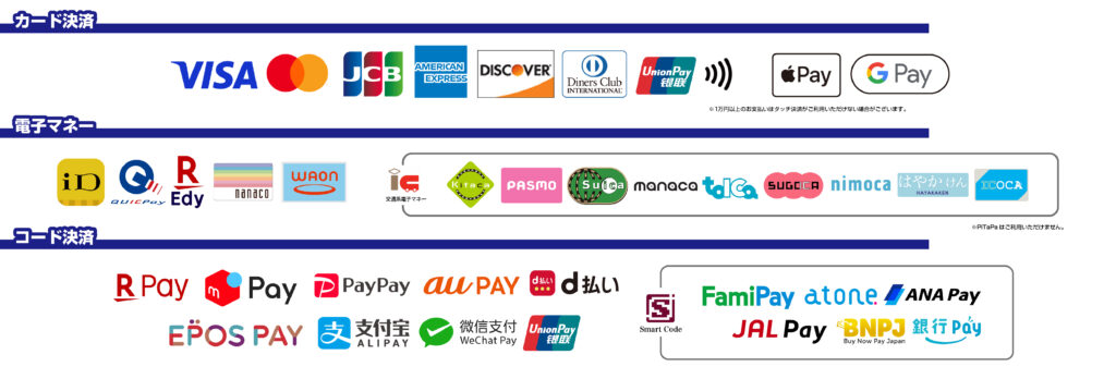 ご利用いただける現金以外のお支払方法は下記の通りです。