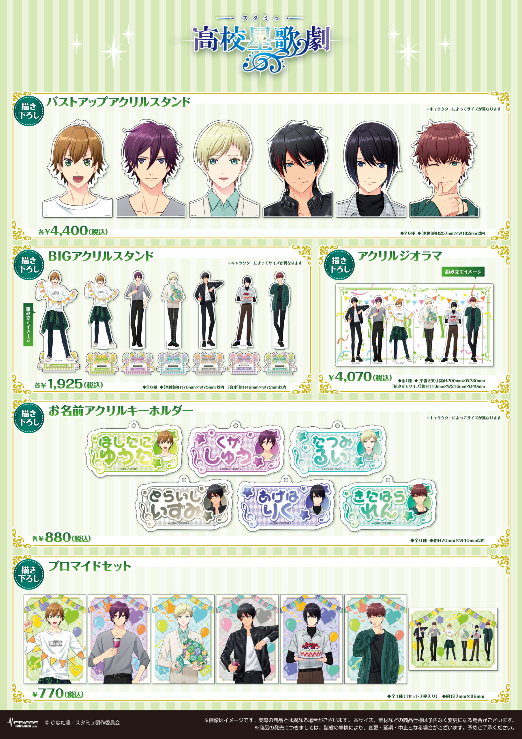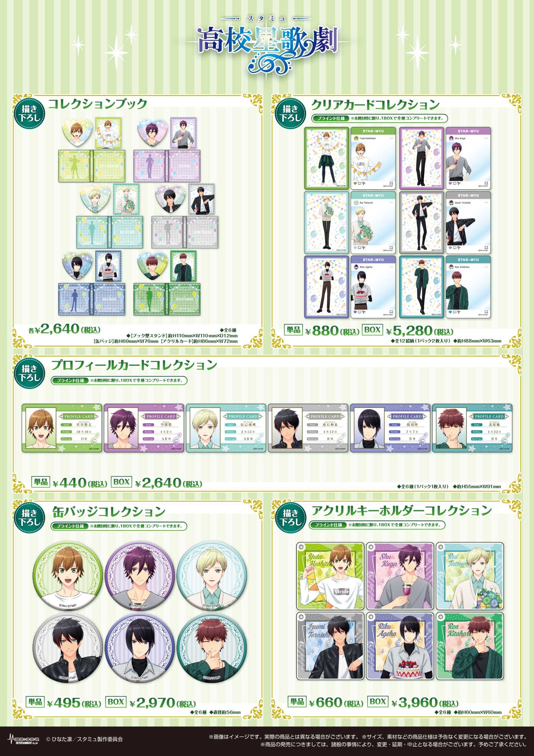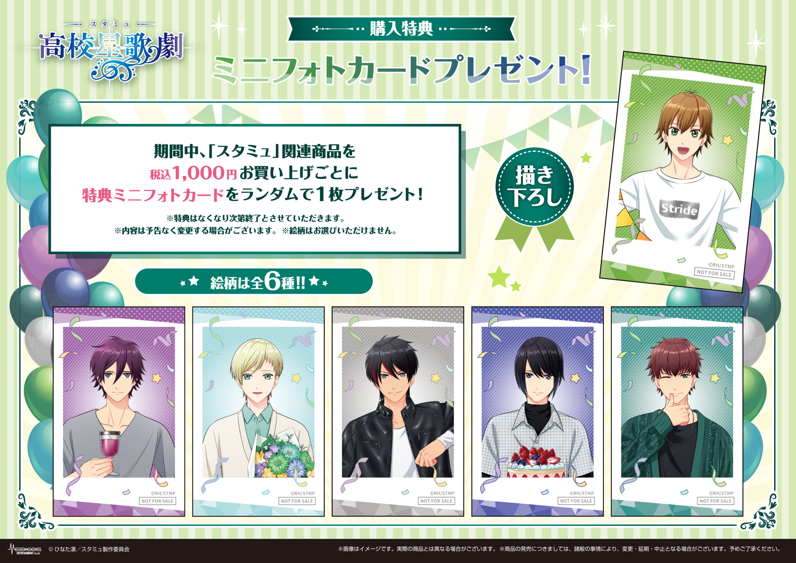 期間中、「スタミュ」関連商品を1,000円(税込)お買い上げごとに特典ミニフォトカード(全6種)をランダムで1枚プレゼント!