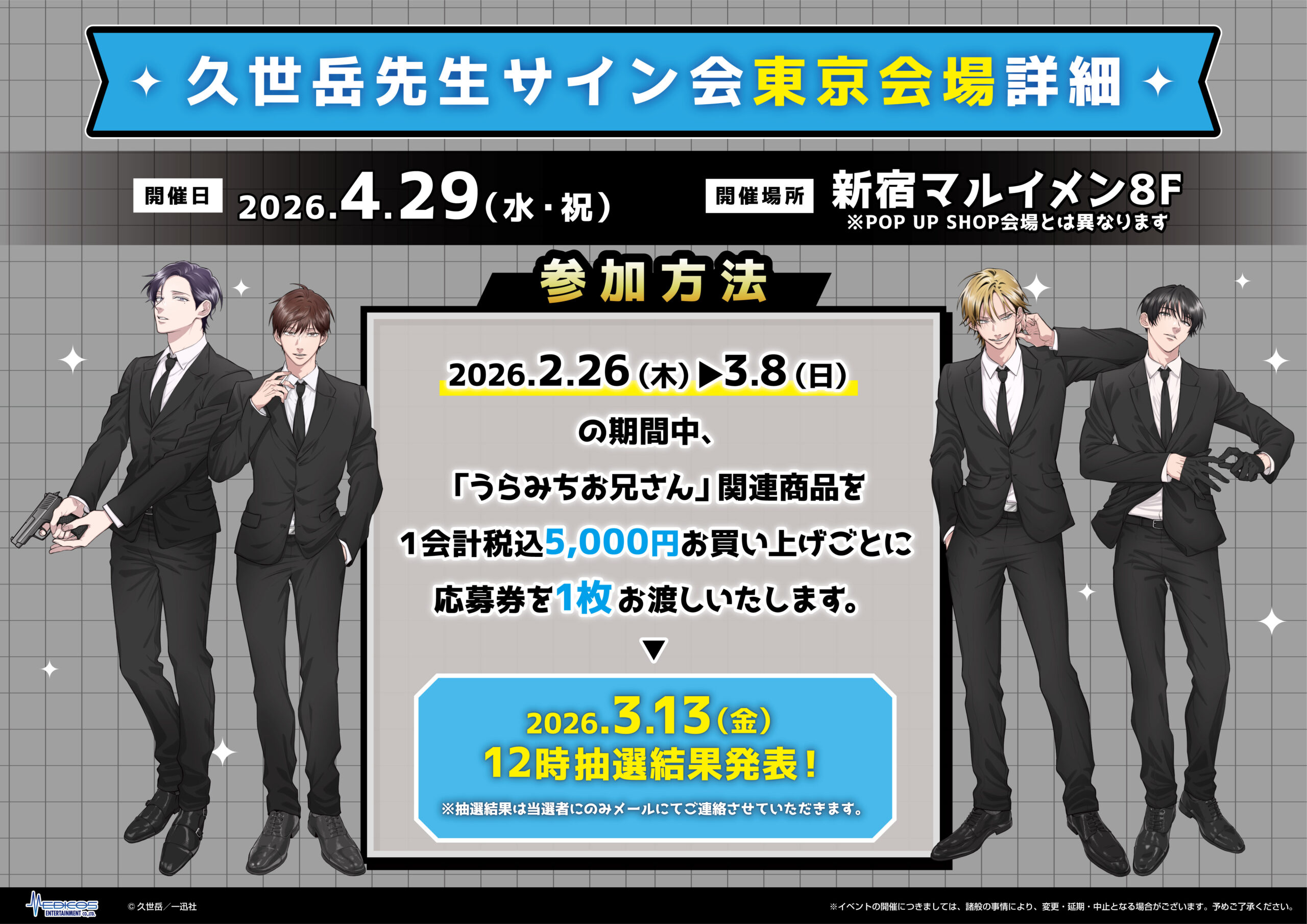 久世岳先生から直接サインをいただける貴重な機会となっておりますので、ぜひご参加ください。